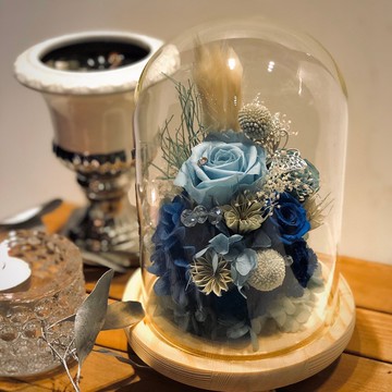 /藍色夜燈盅罩/生日 七夕 情人節 永生花 玫瑰 夜燈 送禮 伴娘禮