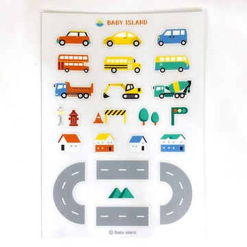 小車車開過馬路,延途風景~由你決定!一張貼紙內收錄了寶包小島的精華:馬路、小車和小房子、路邊裝飾等讓寶包們可以自由發揮創意也方便攜帶,家中裝飾或出門等待時間隨時黏貼不無聊。尺寸:寬度10cm / 高度14cm / 1入(內含22張小貼紙)材質:厚實的透明貼紙材質產地/製造方式Taiwan