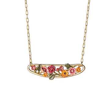 這款鋪滿各式花朵的項鍊,以著色後的玫瑰、毛茛、雛菊等繽紛色彩點綴,營造出美麗的視覺效果。其樣貌宛如鋪滿整面花海的「Milflore」圖案。為了襯托出纖細輕盈的設計,鍊子特意設計得較短。墜飾尺寸:約 11mm × 約 40mm鍊子:約 32cm + 延長鍊約 5cm材質:錫鉛合金日本製造※注意事項※此商品為日本國內由本公司職人手工製作。因此,每一個飾品的塗色與表情皆有細微差異,展現精緻的手工質感。此外,恕不接受商品佩戴後的退貨,敬請見諒。
