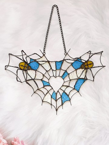 彩色玻璃蜘蛛捕夢網萬聖節裝飾蜘蛛網心型裝飾品
