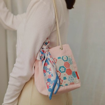 【漁夫袋】 磁磚系列 六角形富士山 粉 拼 粉