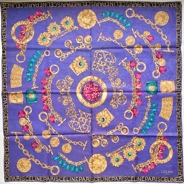 復古 CELINE 紫金鍊條飾紋 手帕 絲巾 方巾