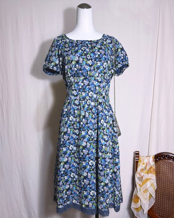 深藍花朵刺繡領片輕古董洋裝/ 國外帶回 VINTAGE
