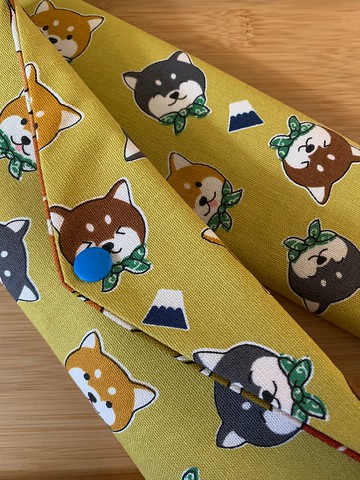 文青風環保純棉筷袋 柴柴打領結 芥末黃 日本 潮物 收納 手作餐