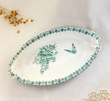 【好日戀物】法國手繪柳染綠花蝴蝶花卉大橢圓盤魚盤儀式感