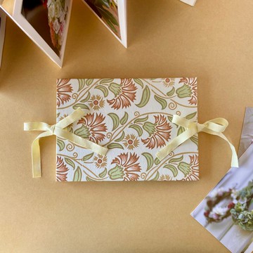 這款相簿採用手風琴書的造型設計,展開後可獨立站立,如同相框般展示您的珍貴回憶。封面選用帶有木刻風格的義大利進口印刷紙。內頁紙張適合鉛筆、色鉛筆、鋼珠筆等書寫工具,不僅能黏貼照片,也能作為簽名冊或剪貼簿使用。** 使用方式 **若要黏貼照片,建議使用市售的三角相片角貼,或是在照片背面四個角落黏貼雙面膠或白膠後直接貼上。使用三角相片角貼能方便更換照片,因此特別推薦。** 材質 **[封面] 紙板 (內層為厚紙板)、義大利紙[內頁] 厚磅紙 (奶油色) **18頁**[緞帶] 棉質** 尺寸 **: 縱向 130 mm × 橫向 180 mm × 厚度 10 mm此尺寸適合黏貼橫式 L 版照片或明信片。請參考第七張圖片。** 禮品包裝 **若您需要禮品包裝服務,請點擊此頁面 ↓https://jp.pinkoi.com/product/h2xgBS6L選購禮品包裝。◆ 手工製作商品,可能會有輕微的歪斜或小刮痕,敬請見諒。◆ 本商品亦於其他平台販售,若庫存顯示有貨,但可能已在其他平台售出。我們會盡快更新庫存資訊,懇請您的理解。