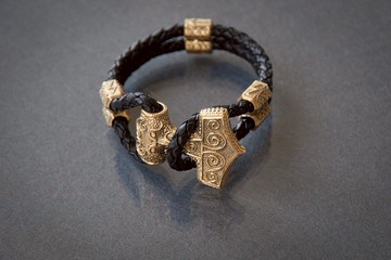 手鏈形式為雷神 (Mjolnir) 青銅錘和黑色編織皮繩上的符文