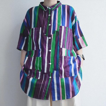【NaSuBi Vintage】紗質面料純色短版古著襯衫