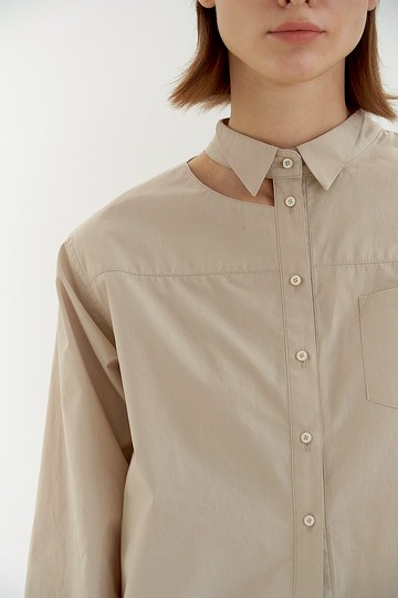 燕子領肩鏤空純棉襯衫/ 淺卡及