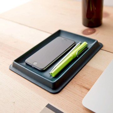 Size _ W210 × D160 × H20Material _ 牛植鞣革[如珍貴物品休息處般的托盤]這不是用來收納日常用品的盒子,而是為了放在觸手可及、顯眼處而設計的承接皿。[傳統技法與現代技術的融合]植鞣革經由水分潤濕後,透過模具加壓,能更具機能性、美感且自由地變換形狀。這種被稱為「革絞」的技法自古流傳,而我們透過製作 3D 數據並使用 CNC(自動銑床)切削模具,實現了複雜且精密的立體成型。[極致發揮素材特性的產品]皮革會代替珍貴物品承受刮痕,並隨著時間轉化為獨特的韻味。此外,使用植物單寧鞣製的皮革雖然耗時費力,但源於自然,最終可回歸大地。
