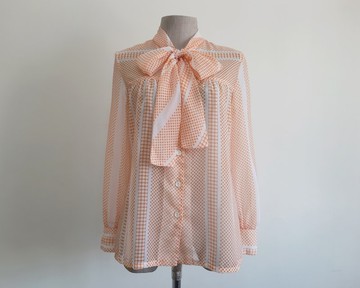 復古橘白圓點領結雪紡輕紗女襯衫 XS