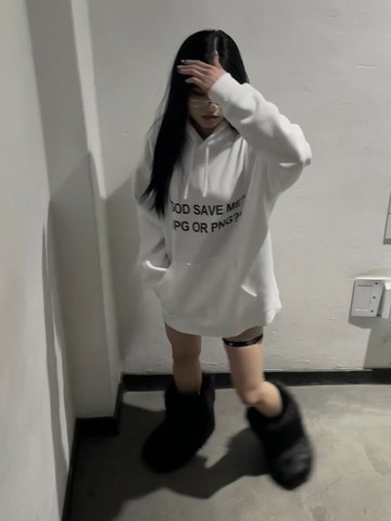卡其色連帽衛衣女中長款2025秋冬新款歐貨加絨保暖寬松大碼上衣潮