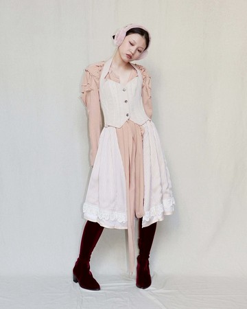 南瓜Vintage。OZZ ONESTE 開襟馬甲背心拼接蕾絲長裙