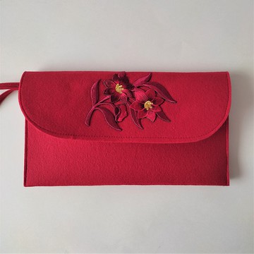 毛氈離合器 手工毛氈手拿包 紅色小包 創意碎花手拿包