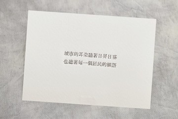 ※手工印製,每張明信片上墨度都不完全一樣。城市的耳朵聽著日昇日落也聽著每一個居民的細語────《群物》手工鉛字活印明信片尺寸|10.5*14.8 cm材質|300g 義大利水彩紙