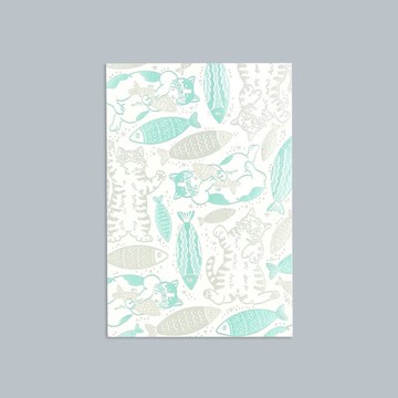 一款描繪貓咪姿態的明信片,深受貓咪愛好者喜愛。閃亮的箔片點綴,更加突顯可愛氛圍。