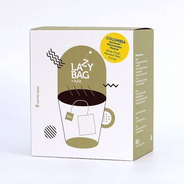 LAZY BAG 一款浸泡式咖啡包,只需加熱水浸泡,隨時隨地享受一杯高質素嘅精品咖啡! LAZY BAG 特點:• 嚴選不同產地及莊園一級精品咖啡• 自家新鮮烘焙製造• 濾袋設計可保留咖啡最佳風味• 標籤以食品級油墨SoyInk印刷• 每盒8包,獨立包裝• 適合Cold Brew冷萃咖啡風味 : 核果,烘果仁,黑朱古力,焦糖