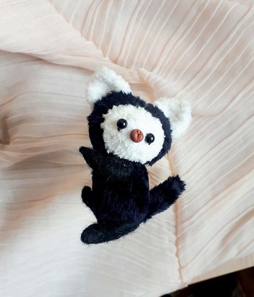 黑白色調的貓毛絨玩具🐈用人造毛皮鉤編和縫製尺寸:約 8 厘米或 3.5 英寸可動爪子免費送貨🚚準備發貨🙌