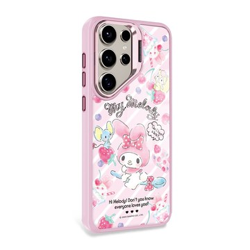 三麗鷗 S25/S24/S23軍規防摔合金框隱形立架手機殼-甜點美樂蒂-粉
