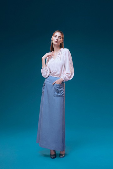 Off-season sale 牛仔灰口袋反褶長裙