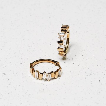 18K 階梯方鑽圈圈耳環
