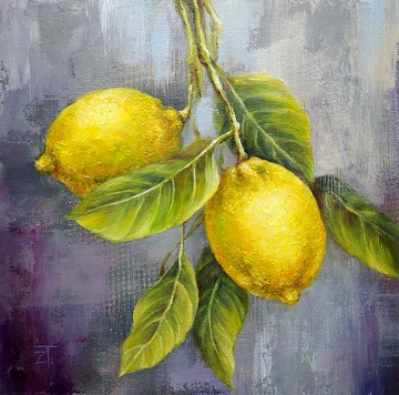Lemons Painting. Original created.Original oil painting on linen canvas 25 x 25 cm.Handpainted artwork Original Oil Painting Painted by pallet knife impasto by Myself. I use top quality materials.The artist's signature is present on the artwork.Frame not included.