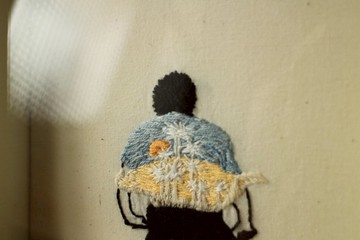 〈 藍色大門 〉尺寸:18.7 x 18.7 cm (含框)材質:繡線、布、卡紙、壓克力、木框、掛繩小士,看著你的花襯衫飄遠 我在想一年後 三年後 五年後 我們會變成什麼樣子呢?由於你善良開朗又自在 應該會更帥吧 於是 我似乎看到多年後你站在一扇藍色大門前 下午三點的陽光 你仍有幾顆青春痘 你笑著 我跑向你問你好不好 你點點頭 三年 五年 甚至更久以後我們會變成什麼樣的大人呢?是體育老師 還是我媽?雖然 我閉上眼睛也看不到自己,但是 我卻可以看見你。-我深愛的電影— 2002《藍色大門 》易智言|注意事項|・每台電腦多少會有一點色差,介意者請勿購買。・背面有掛繩,可掛於牆面。・請避免潮濕、油煙的場所。