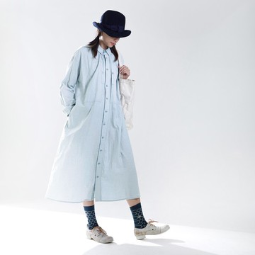純棉大翻領鬆緊澎袖襯衫洋裝