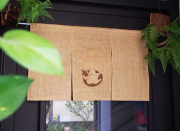 刺繡貓咪日式門簾(包桿式)(米色 麻植) __家飾類 免運 文青