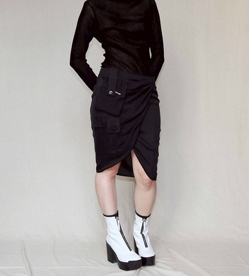 南瓜Vintage。Emporio Armani 黑色 真絲 拼接口袋 開衩 及膝裙