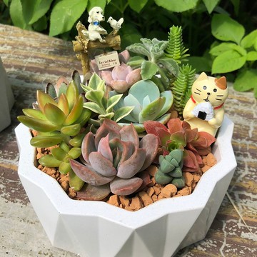 美都綠MIDORI多肉組合送禮盆栽,適合開幕、升遷、畢業、生日、入新居、交換禮物...等【商品內容】●由設計師挑選9至11種顏色鮮明且高低不同層次的多肉植物組合盆栽(每一盆都是獨一無二的喔!照片僅供參考)●時尚設計感純手工自製水泥盆,A款、B款(A、B款皆有白、水泥色2色可選),花盆直徑約13.5cm、高約6cm,請備註告知款式及顏色)。●裝飾品可任選兩樣(請備註告知編號)●植株照顧說明【注意事項】●如加購提袋,請在備註說明賀卡內容或私訊設計師(賀卡內容為打字列印)。●接單訂製,下單並完成付款後3-5個工作天內出貨。●水泥盆皆為純手工製作,如有些許氣孔或色差正常現象,完美主義者請勿下單。