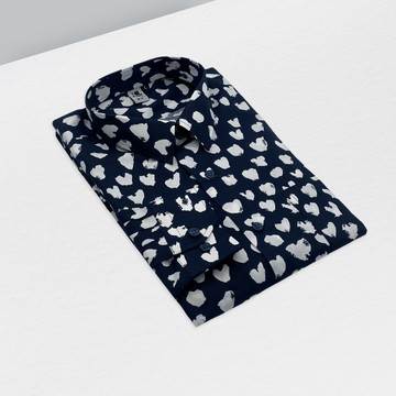 不規則愛心深藍襯衫-深藍底搭配白色愛心 穩重中帶點玩心