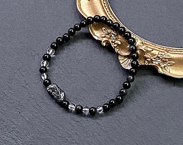 【商品名稱】招財避邪-黑曜石x白水晶x黑膽石貔貅天然石手鍊 客製化【材料】黑曜石約5~6mm、白水晶約4~5mm、 進口彈性線【晶石介紹】貔貅-貔貅是一種神獸,又名天祿、辟邪,相傳是一種神獸,以財為食,納食四方之財。,帶來財富守住財庫,會替主人尋找貴人所以被封為 最好的招財、旺財吉祥物!貔貅生性凶猛,因為没有肛門,只進不出的傳說讓它的招財更令人堅信不移。「貔貅」有將這地方的邪氣趕走、帶來歡樂及好運的作用。建議將貔貅手鍊的頭部朝向外面,小拇指方向。吸收財源。黑膽石-黑膽石(磁礦石)磁場強勁、可轉化負思想、強健身心、使人舒泰與安康,也可幫助排除負性能量,驅除厄運.避小人,招貴人。黑曜石-黑曜石(Obsidian)被印第安人稱為“阿帕契之淚”和“不再哭泣的寶石”。在印第安傳說中,部落內的一支隊伍中了敵人的埋伏,寡不敵眾全軍覆沒,噩耗傳來,家人們痛哭的眼淚,撒落到地上,就變成了一顆顆黑色的小石頭,誰擁有這樣一塊黑色的曜石,便永遠不用再哭泣,因為,阿帕契的少女已經替你流乾了眼淚,“阿帕契之淚”因此得名。將黑曜石送給自己喜歡的人,喻義不再哭泣,永遠幸福快樂。黑曜石也常被當為避邪檔煞的寶石,因具有強大且又精純的能量,常被當護身符,能強力化解負能量.可使人穩重、舒緩壓力、心平氣和、消除情緒困擾。並可加強行動力,增強領袖魅力、向心力、有助事業,也稱「領袖石」。白水晶-白水晶又稱水晶之王,它純凈透明,是大地神奇的贈禮擁有所有能量的綜合體,白色水晶代表著平衡和美滿,功能最多能幫助凈化混亂的磁場提升聚集正面的磁場,所以稱為“水晶之王”。白水晶:增加運勢,緩和人際關係,消除矛盾、爭執,促進生意興隆,消除負能量, 提升專注力, 平衡情緒, 擋煞防小人。【手圍測量】-將皮尺貼近自己的手腕貼近繞一圈測量,若無皮尺可用繩子或線繞手圍一圈後再平放用尺測量,下單備註請勿自行加公分尺寸,譬如實際貼近測量淨手圍尺寸為16cm,請備註16cm,煩請按照實際貼近測量的淨手圍尺寸備註。[若不知如何測量,煩請聯繫設計師]^^-下單請正確測量並備註客製的淨手圍尺寸,設計師會按照您的手圍尺寸製作適合的大小,若有特別需求請聯繫設計師喔!-下單請務必備註淨手圍尺寸,才能加快製作速度,盡快把客製的手鏈寄出,若是贈送的禮物,也麻煩務必下單前先測量,下單備註,因每個人淨手圍尺寸不盡相同,無法準確猜測尺寸,請理解喔~ ^^【關於線材】線材-使用進口彈性線,不易斷,韌性強。【關於包裝】出貨均附上1.復古外包裝袋.2.透明飾品包裝袋3.保養說明卡4.售後維修服務卡非常感謝您喜愛Fitter設計,下單前煩請花幾分鐘讀完以下注意事項同意在下單喔~ ^^【關於消磁淨化】-天然石飾品寄出前均會先消磁,飾品收到後直接配戴即可-之後建議消磁方式請參考網頁連接https://www.pinkoi.com/product/gn3rHMZX【貼心服務】-因每個人淨手圍不同.下單請準確提供客製的淨手圍,手鍊會依您提供的淨手圍製作舒適的尺寸,手鍊會依手圍大小略調整排列方式及組合比例,下單後請注意站內訊息,設計師會跟您再次確認淨手圍尺寸。【注意事項】-商品是您下單購買後提供淨手圍尺寸,開始手工客製製作,售出後除瑕疵外不提供退換貨。-晶石類每顆顏色/深淺/紋理都可能不一樣,天然石的特性可能會有些許冰裂/棉絮/雜質/及打磨等的小瑕疵,請理解天然石特性在下單。-天然石會有瑕疵屬於正常的,無可避免。完全無瑕疵的水晶, 那就有可能是過於後期處理,並不屬於完全天然石。由於是天然石,每顆珠子成色和晶體都不可能一樣。-手創品可能會有手作痕跡(如繞線或膠水等),並不像機器或塑膠品完美。吊墜頭可能會有焊接痕跡。-無論金/銀/銅/合金各材質都會隨著時間/環境/溫濕度及個人配戴習慣可能逐漸氧化或褪色,可參考保養方式!-商品皆實品拍攝,因每台電腦顯示或相機拍攝所處的環境光源不同,可能會有些微色差,請體諒!-飾品精緻細小,正常使用情形下都是沒問題的!請不要過於大力拉扯喔!-手鍊會依手圍大小略調整排列方式及組合與比例喔!-客製化商品無七天鑑賞期,除了瑕疵外,無退貨/換貨的服務。收到商品,若需要更改尺寸,需自行負擔來回運費與修改工本費。https://www.pinkoi.com/product/5Nt3vWfj【保養方式】-睡覺/洗澡/洗手時請避免配戴,可以減緩飾品的氧化現象。任何飾品要延長壽命大多都不建議帶著洗澡(接觸清潔用品),尤其不能泡溫泉!-銅14K包金 保色效果好.雖然保色效果好,但還是看個人使用習慣,金屬會隨者時間或使用習慣慢慢退色,平常無配戴請收在飾品收藏袋裡保存,有助於商品壽命的延長喔!-金屬材質(純銀/黃銅)長時間配戴接觸水/空氣/汗水/化妝品/化學藥劑...等,容易導致氧化褪色,建議每次戴後用溫水加點牙膏把鏈子刷洗一下,用清水沖洗在擦乾,較不易變黑。- 銀飾品氧化變黑是因為跟空氣中的硫產生硫化作用,只要使用洗銀水或拭銀布就可以讓銀飾品恢復以往光澤。-黃銅氧化會變成比較復古色,用牙刷沾一點會發泡的牙膏或牙粉輕刷表面,或用銅油在用擦銀布擦拭,可使黃銅恢復光澤,注意清洗完要把水份吸乾-晶石類飾品可使用衛生紙或乾布沾清水擦拭清潔。-請避免長時間陽光直射。若不配戴時可放於密封夾鏈袋保存!-經常替換配戴的飾品也有助於商品壽命的延長喔!- 每件飾品材質不同,軟硬度