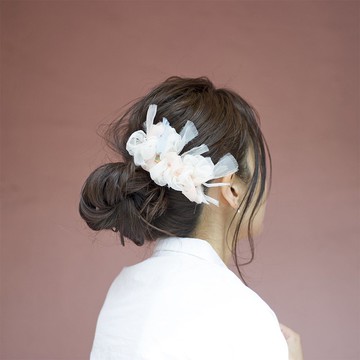 白色粉玉蘭髮夾/手工花髮飾/新娘頭飾