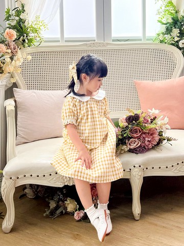 ✦ 來自巴黎的精品童裝 ✦ 周歲派對、生日禮服、花童洋裝首選 ♡雋永典雅的Sophie洋裝,白色小圓領搭配歐美經典黃色格子洋裝,充滿法式女孩的清新氣質!拉克蘭連肩袖的剪裁設計和傘狀寬鬆裙型設計,舒適修身且讓孩子活動更自在不受限,適合各種身型的孩子。充滿設計感的袖口荷葉鬆緊帶設計,展現法式女孩的細緻時尚。 Sophie洋裝嚴選日本製純棉黃色格紋布料,舒適透氣,典雅時尚。內裡布料嚴選日本製細緻純棉布料,輕薄舒適不悶熱,給孩子最高品質的質感衣物。搭配同花色髮飾穿搭👉 https://www.pinkoi.com/product/eYjCBDcM 【款式特色】• 嚴選日本製純棉黃色格紋布料• 嚴選日本製純棉白色內裡布料• 荷葉袖口鬆緊帶設計• 後背全開襟鈕扣設計• 拉克蘭連肩袖的剪裁設計• Made in Taiwan 法國設計,台灣精品裁縫師傅製作【材質】• 主要布料:100% 純棉• 內裡布料:100% 純棉【洗滌建議】• 建議⽤冷⽔或低於攝氏30度的⽔溫⼿洗或溫和慢速機洗,最好將衣服翻⾯清洗。清洗時請使⽤中性洗衣/粉。• 洗滌時請將深淺⾊分開,與相似顏⾊⼀起清洗。• 請勿使用漂白劑或強力清潔劑,避免衣物褪色。• 洗滌後建議自然風乾,盡量避免陽光直射,如有印花最好反面晾乾,避免因陽光照射而造成衣物褪色。請勿滾筒烘乾。• 可以專業溫和乾洗。• 如需熨燙請⽤低溫,熨⽃底版溫度不可超過攝氏110度。-✰彌月禮盒首選✰ 可加購精美禮盒包裝,展現送禮滿滿心意♡【加購禮盒包裝】👉 https://www.pinkoi.com/product/X4SK4p4H🎀 更多穿搭▸▸ FB & IG 搜尋「BOBO CHÉRIS 波波雪莉」,看看更多法式親子裝穿搭!