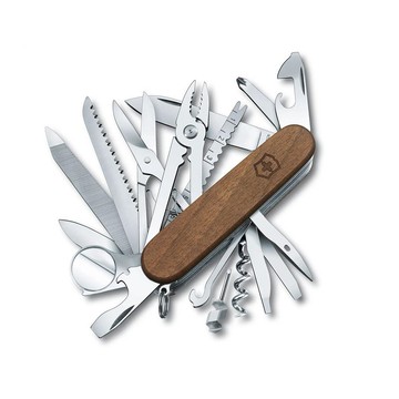 瑞士維氏 (Victorinox)百多年歷史為信心的保証瑞士維氏 (Victorinox) 鋼刀是歐洲最大的刀具廠,有120年歷史,自1884年開始至今已傳至第四代經營,是世界著名的品牌,絕對是信心的保證。有胡桃木刀殼的瑞士軍刀我們的Swiss Champ Wood 袋裝刀,是以傳奇的Officer's 軍刀為藍本而設計的原創Victorinox 瑞士軍刀。我們一直忠實於瑞士軍刀的經典根源,並加入平滑的胡桃木刀殼,內含至少29 種功能以及無數的可能性,包括量尺、鉗子和螺絲批。因此不論您在何處、不論有什麼事,Swiss Champ Wood 都是您一定要隨身攜帶的必備工具。Victorinox風格與環保的結合--木柄系列: 瑞士維氏的木質刀柄瑞士軍刀系列,是風格與可持續發展性的結合。我們重新設計了最經典的 Victorinox 袋裝刀,加入環保回收的概念。使用來自歐洲森林的胡桃木,不只是製造物料 100% 天然、可回收再造,而且留下的碳足跡也很少。此外,胡桃木優美俐落,而且非常耐用。本商品規格高度:33 mm長度:91 mm重量:185 g材質:胡桃木工具:1. 大刀2. 小刀3. 開罐器4. 3 mm 螺絲批5. 開瓶器6. 6 mm 螺絲批7. 電線剝皮鉗8. 針、鑽孔錐及畬紉孔9. 拔軟木塞器10.迷你螺絲批11.剪刀12.鉗13.鋼絲鉗14.壓㯴工具15.去魚鱗器16.去魚鉤器17.尺 (厘米)18.尺 (吋)19.木鋸20.指甲銼21.指甲清潔器22.金屬鋸23.金屬銼24.放大鏡25.十字螺絲批 0/126.2.5 毫米改錐27.鑿子 4毫米28.多用途鉤29.鑰匙圈原廠包裝盒商品鑑賞期間如需退換貨,商品須未使用過且完整(包含配件)