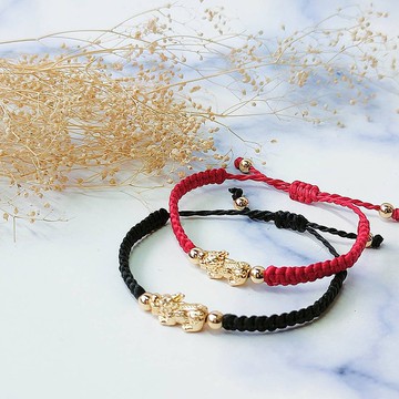 14K金包銅招財好運貔貅編繩手環 發財轉運幸運滿滿 多色可選