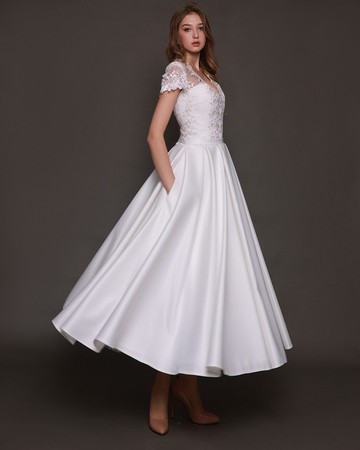 短款緞面婚紗、緞面婚紗禮服、茶會長度婚紗