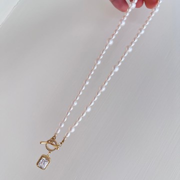 設計亮點 •\t白色天然淡水珍珠,大小錯落設計\t•\t金色 T 字扣方便配戴,並具裝飾效果\t•\t吊墜為高質感仿鑽鋯石,閃爍吸睛\t•\t輕珠寶風格,適合各種場合穿搭\t•\t手工製作,每件皆為獨特存在 商品規格 \t•\t材質:淡水珍珠、鋯石、合金鍍金五金\t•\t長度:約 42 公分 (如需其他長度,請聯絡設計師訂製)\t•\t吊墜尺寸:1.2*1cm\t•\t風格:復古現代混搭 / 輕珠寶設計\t•\t設計與製作:台灣手工製作搭配建議 這款項鍊以不對稱珍珠與金色鋯石吊墜組合,優雅中帶有個性,推薦搭配以下風格:\t•\t法式氣質風:搭配方領或V領上衣,打造慵懶優雅的浪漫感 •\t極簡現代風:搭配黑色削肩上衣或素色洋裝,讓項鍊成為亮點 •\t復古華麗風:搭配絲質襯衫與紅唇妝容,適合正式場合或晚宴保養方式 •\t建議配戴後用乾布輕拭,避免汗水殘留\t•\t收納時保持乾燥,避免與香水、化學物品接觸\t•\t不建議配戴洗澡、運動或游泳包裝與運送每件飾品皆附品牌專屬包裝盒與絨布袋,適合送禮或自用。國際訂單採用防撞材料包裝,並且採用掛號方式,附追蹤碼,保障您的包裹安全
