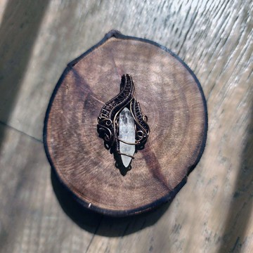 白水晶吊墜。線材為純銅線仿舊處理。整體尺寸(長x寬)為41x23mm。對我而言白水晶一直是別具意義的礦種,即使在還沒有對礦石產生特別興趣的時期,聽見「水晶」這兩個字時第一個聯想到的無疑就是白水晶的六方柱形以及通透的晶體,他們不僅是我認識水晶礦石的起始點,在開始認識礦石之後,即便不論有內包共生礦物的型態,不同產地、不同生長型態的白水晶都能在通透之中形成獨自的特性與美感,即便他們遍布地球各個角落,也不及寶石們多彩耀眼,但我總能從白水晶上感受到一種難以言喻的踏實穩定。這次挑選的白水晶們並非來自特殊的產地,也沒有太珍稀的特性,但都保有了通透與樸實,以及象徵性的雙尖六方柱形。對我來說就像是一個理解與回歸原點的過程,也希望他們能傳遞我所感受到的踏實與安穩。今天介紹的這件作品是三件雙尖白水晶新作中唯一沒有配石的一件,做為主角的晶柱有著三件作品的主石中最直率通透的形狀,雙尖的部分也都大致完整,所以裝飾上以展示他原本的型態為主,在編織鞏固的基礎結構上展開編織與曲線的表現空間,以背面和底部樸實無華的努力造就整體的獨自特性與美感,這正是我對安座其中白水晶的理解,也與大家一起分享。❖作品照片多為白天自然光拍攝,尺寸為長x寬(x厚度)。❖金工銀飾作品預設不附配鍊,搭配上除了市售銀鍊之外,純銀硫化仿舊處理的作品也推薦搭配不鏽鋼鍊,色調上比較搭配。❖金屬線編織製作過程中可能會因操作手勁造成線材少許夾/剪痕,基本上不影響配戴效果。❖標示「藝術銅線」為銅線+鍍層+保護層的手工藝專用線材。標示「紅銅線」「黃銅線」為裸銅線(無電鍍層)。銀線會註明為925或999銀。❖天然石均可能天生有雲霧、紋路、礦缺等特徵。也可能有打孔、拋光上的小瑕疵存在。❖寄送預設為簡單包裝,會有乾淨防撞包材與寄送袋,也都會附上密封袋方便保存。【藝術銅線編織飾品】❖ 藝術銅線為純銅線+電鍍層+保護層的手工藝專用線材,正常使用保養下色澤可維持數年不會有太大變化。❖ 因為表面有電鍍及保護層,請不要使用拭銀布以及牙膏來做清潔,會使鍍層快速耗損。❖ 平時配戴後請用軟布擦乾水分濕氣(特別是汗水)放入附上的密封袋保存。❖ 請盡量避免於運動等大量出汗的場合,及泡溫泉時配戴,除了會加速線材耗損之外也可能會損傷天然石。【無電鍍銅線/銀線編織飾品/金工純銀飾品】❖ 紅銅線・黃銅線.銀線均為無電鍍層的線材,自然氧化為正常現象(會逐漸變成古銅色/古銀色)。隨配戴與個人體質所變化的色澤與氧化速度都會有些不同,也是裸銅線飾品的個性之一。氧化速度上個人體感紅銅線較快(數天~數週可能就會變成古紅銅色),黃銅與銀較慢。❖ 硫化(仿舊)處理後的線材色調相較未處理線材色調會比較穩定,但有拋光的部分同樣也會逐漸自然氧化。❖ 若希望清潔氧化的部分,一般可以使用拭銀布擦拭,或使用牙膏輕輕刷洗後擦乾或吹風機冷風吹乾。❖ 平時配戴後可使用軟布擦乾水分濕氣後放入附上的密封袋保存。❖ 請盡量避免於運動等大量出汗的場合,及泡溫泉時配戴,除了會加速線材氧化之外也可能會損傷天然石。❖ 無電鍍線材的作品後續皆可送回重新拋光(僅需負擔來回運費)【天然石】❖ 天然礦石均可能有雲霧、紋路、礦缺、黑點,加工上也可能有打孔、拋光上的小瑕疵。❖ 作品使用的天然石多為半寶石,部分礦石種類可能硬度較低(會特別註明),請盡量避免在保養飾品金屬部分時讓拭銀布、牙膏等有研磨拋光功用的物品接觸到天然石的部分。❖ 請盡量避免於運動等大量出汗的場合及泡溫泉時配戴,可能會損傷天然石。