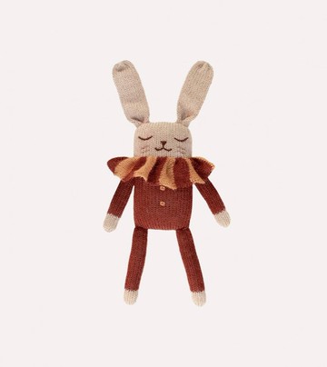 兔子針織玩具/赭色條紋衣領