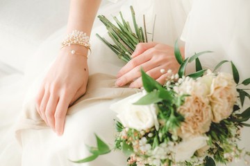 白色婚禮進行曲・優雅粉永生玫瑰捧花