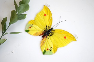 用於窗戶或花園的玻璃黃色蝴蝶太陽捕捉器 - 熔融玻璃太陽捕捉器