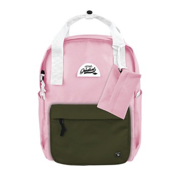 Grinstant混搭可拆組式13吋後背包 - 夢幻系列 (粉紅色配軍綠色)