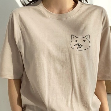 左胸 Nose Picking Cat 中性短袖T恤 卡其色 貓咪挖鼻孔 厭世禮物