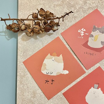 大吉-貓貓春聯大概像阿嬤養的橘貓那種 超大的大吉 今年因為機器怪怪的印刷店幫人家裁了可能會比較不歪一點可是有點沒切好的人家會修一點點邊所以那個如果你有在追求很直我我我不能保證你還是斟酌一下紙張有兩種薄紙款是像書本內頁那種軟軟的薄紙本身不是亮面但是印上墨水後有微微的光澤厚紙款是可以當卡片明信片的厚度上面有銀箔很亮很漂亮兩種都沒有黏性、不含背膠你們自己找喜歡的膠去黏背面是全白的尺寸:大約9.8 cm * 9.8 cm (每張可能有些微差距)材質:薄紙-輕磅印書紙 100ghttps://c1.staticflickr.com/5/4828/32868374368_02eba8f043_b_d.jpg薄薄軟軟的紙不能當卡片大概像這樣https://c2.staticflickr.com/8/7908/46690768122_2d4e9a2142_b_d.jpghttps://c2.staticflickr.com/8/7911/32868427608_718c5a359d_b_d.jpg厚紙-絪彩紙(銀)表面有銀箔商品照逆光時會出現的斑點就是那個箔箔https://c1.staticflickr.com/5/4810/45828147445_680910808c_b_d.jpghttps://c2.staticflickr.com/8/7882/45828155235_135325e7c9_b_d.jpghttps://c2.staticflickr.com/8/7879/45828160205_1e5612fc1e_b_d.jpg