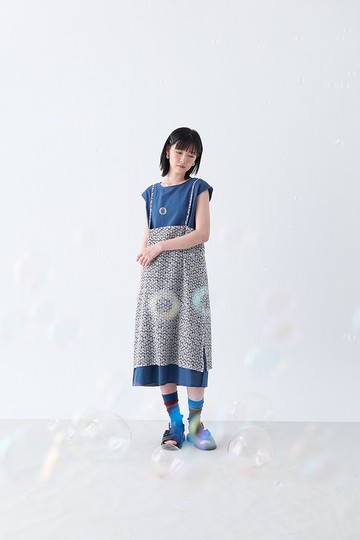 冬日洋裝 blue night/light gray 復古鈕釦