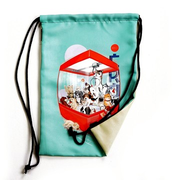 可以減少全球變暖的束帶袋,貓圖案,廣口瓶,狗,抓斗櫃,前,後,帆布,便於攜帶。