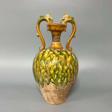 唐三彩雙龍柄壺