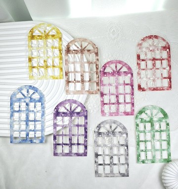 星系窗口模切材質:Vullem 紙 180g數量:每種顏色 6 件顏色:藍色、粉紅色、紫色、綠色、棕、黑色、黃色、紅色